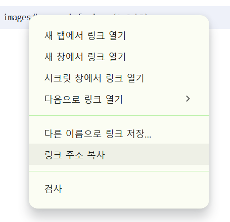 파일에서 우클릭 -> 링크 주소 복사로 파일 링크를 받아오기.