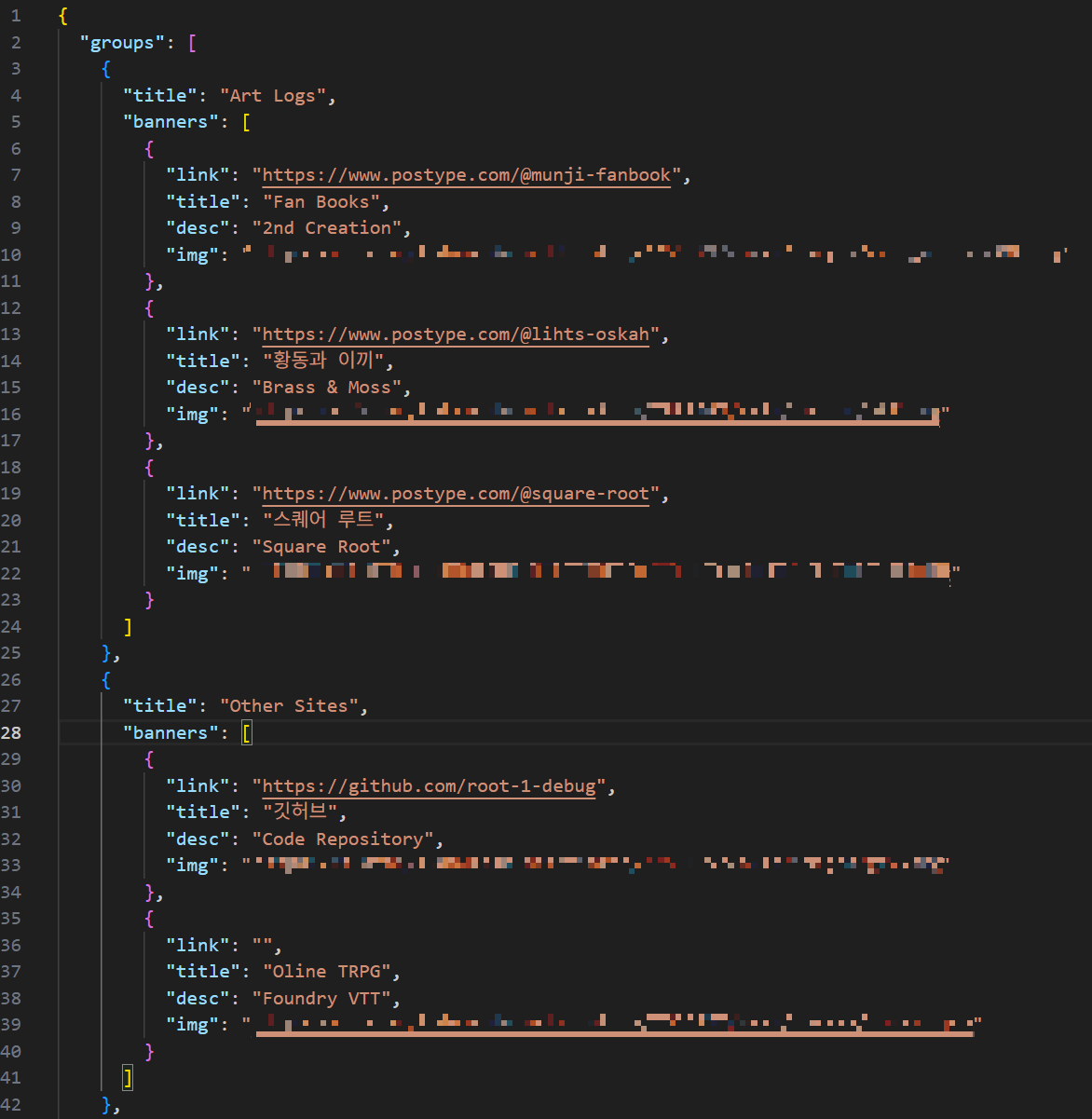 일정한 JSON 포맷으로 작성된 파일에서 연결 URL, 배너의 이름과 설명, 배경 이미지를 읽어와 html을 생성하고 특정한 위치에 붙여주는 것이다.