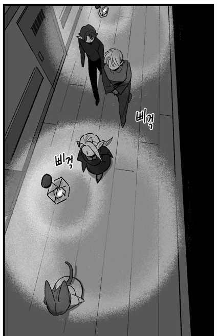 4권에서는 흐릿한 가스등을 켜 둔 복도를 따라 화면과 가까운 방향으로 움직인다.