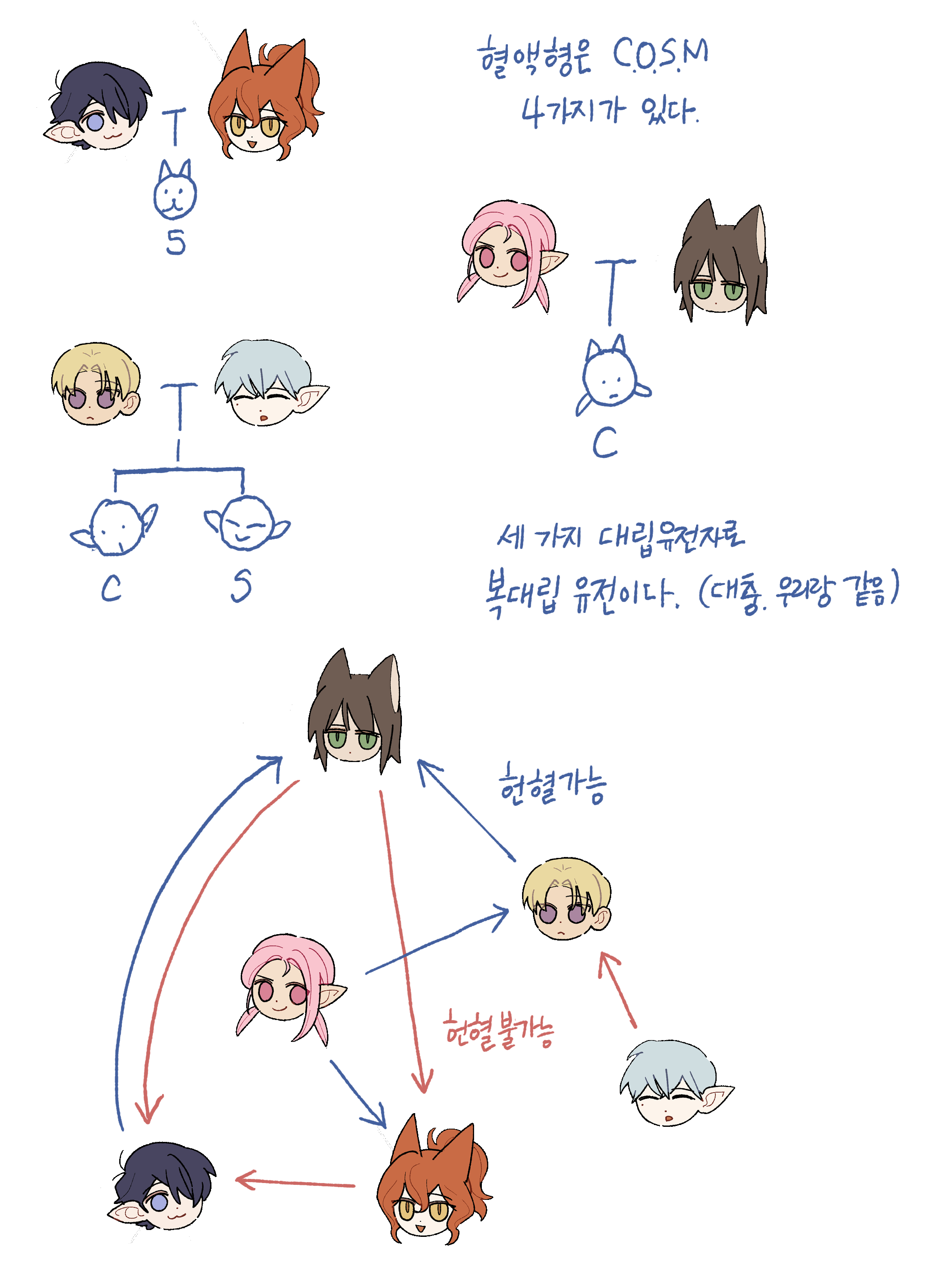 일단 전제는, 우리와 비슷하게 네 가지의 혈액형이 있고 각기 헌혈 가능 방향이 있다는 것이다.