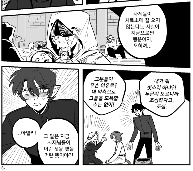 병으로 정의하는 대사는 이 판타지 세계관이 미신과 환상을 깨고 과학과 의학으로 전환되는 느낌을 주고 싶었다.
