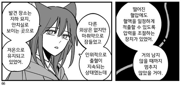 진통제로 의한 의식 없음과 혈액 적출에 대한 이야기.