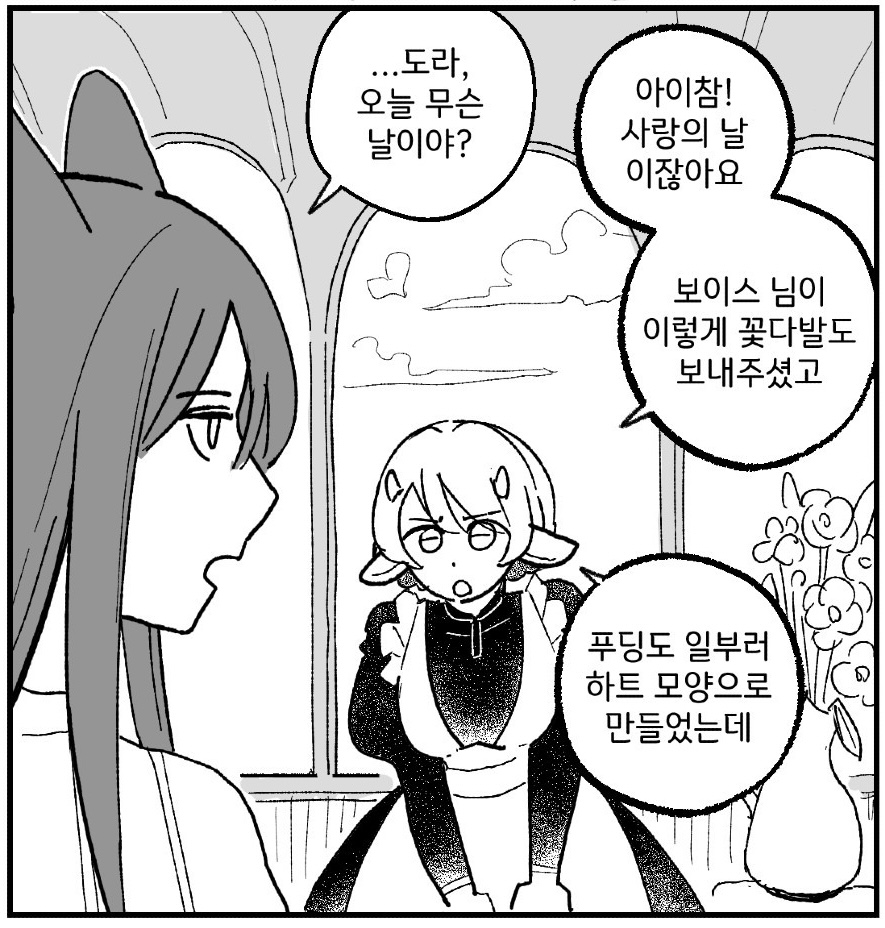 사람이 많지 않아서 기본 식사 외의 후식은 도라가 주로 준비하고 집안의 우편물이나 자잘한 관리도 그의 담당